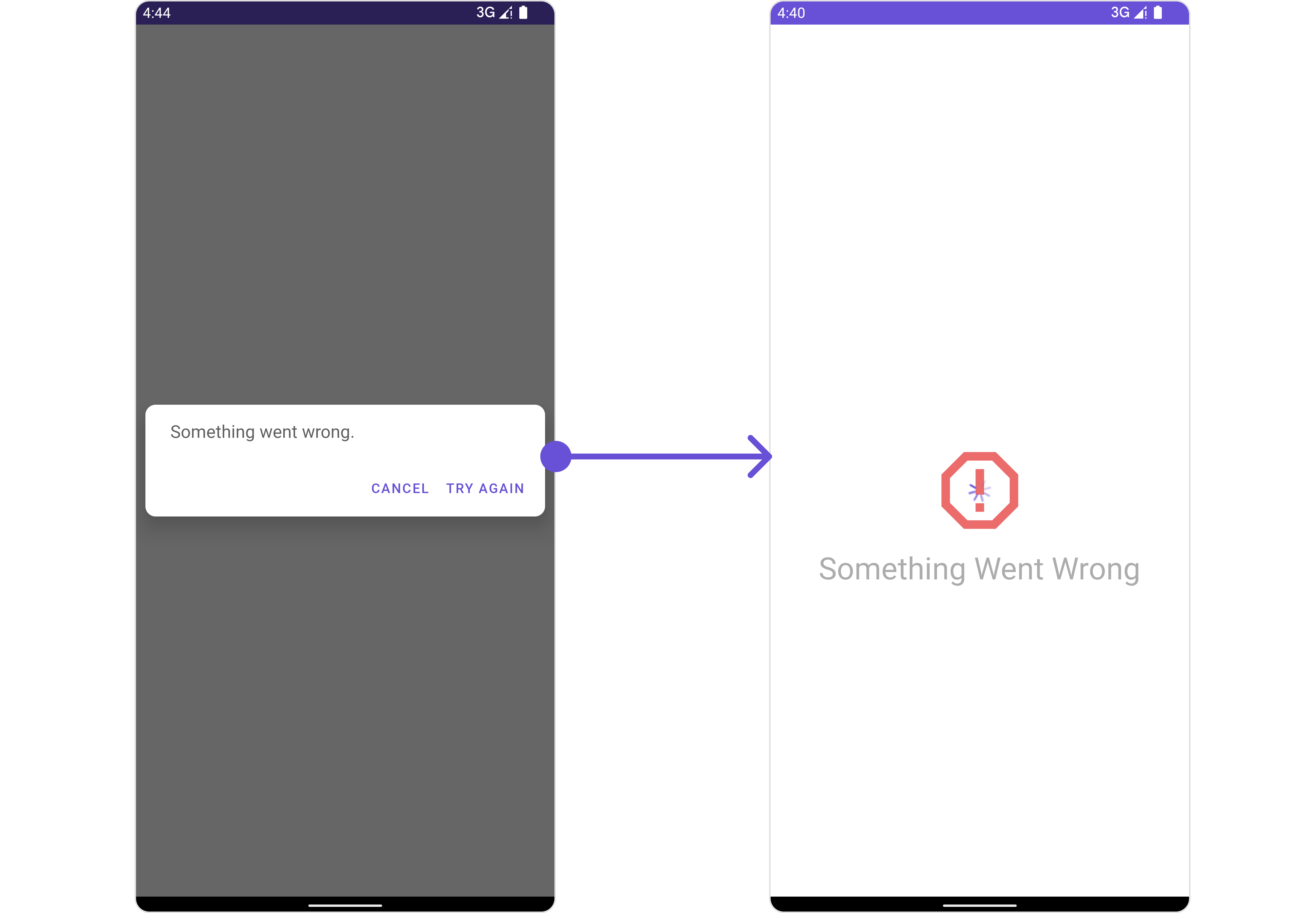 We have added an error view to error_state_view_layout.xml. You can choose any view you prefer. This view should be inflated and passed to the setErrorStateView() method.