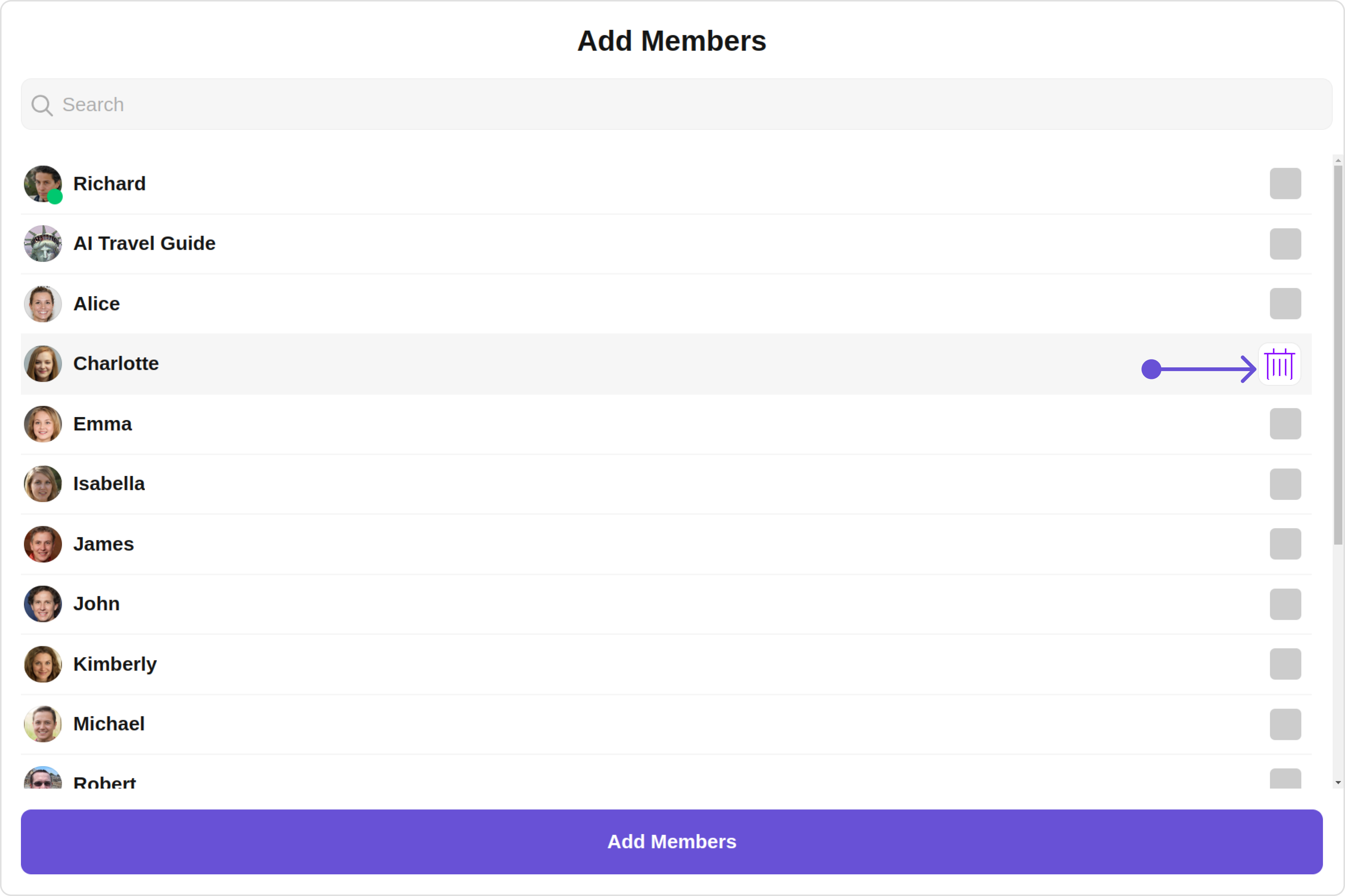 To fit your app’s design requirements, you can customize the appearance of the Add Members component. We provide exposed methods that allow you to modify the experience and behavior according to your specific needs.Style